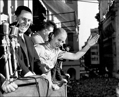 Juan dan Evita Peron adalah pasangan Argentina sekitar tahun 1940an. Evita sendiri merupakan istri kedua Juan yang adalah presiden Argentina. Evita menjadi ibu negara dari tahun 1946 sampai ia meninggal tahun 1952. Latar belakang Evita sendiri adalah seorang artis. Dan Juan Dominggo jatuh cinta pada Evita muda dan menikahinya. Peran politik keduanya sangat berpengaruh sehingga dapat mengubah wajah Argentina, bahkan mereka dijuluki pasangan politik terbaik di era itu. Evita sendiri akhirnya meninggal akibat kanker. Mungkin kita sempat mendengar lagu yang terkenal berjudul “Dont cry for me Argentina” yang dibawakan oleh Madonna. Saat itu Madonna memerankan Evita di video klipnya.